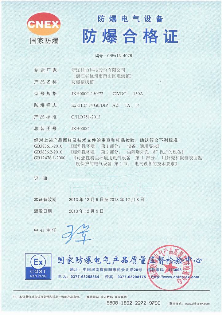 防爆證書>>詳細(xì)信息