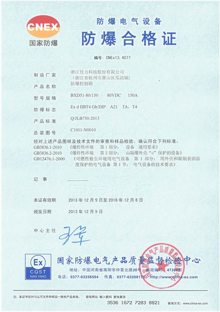 防爆證書>>詳細(xì)信息
