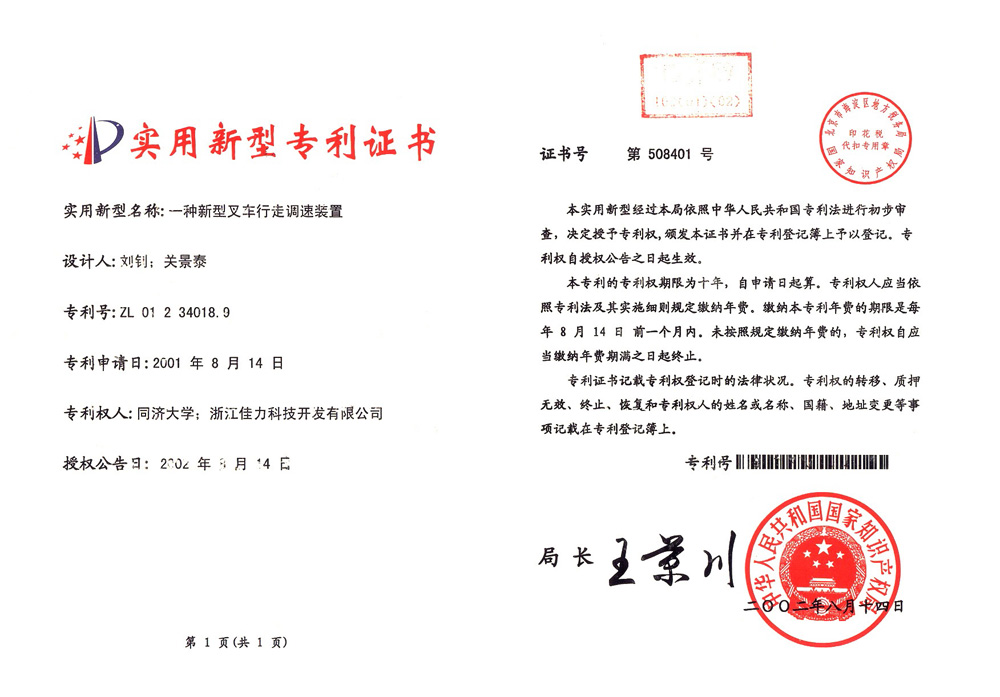 實用新型專利證書