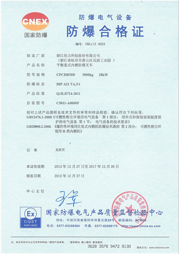 CPCDB35 平衡重式內(nèi)燃防爆叉車 粉塵證書