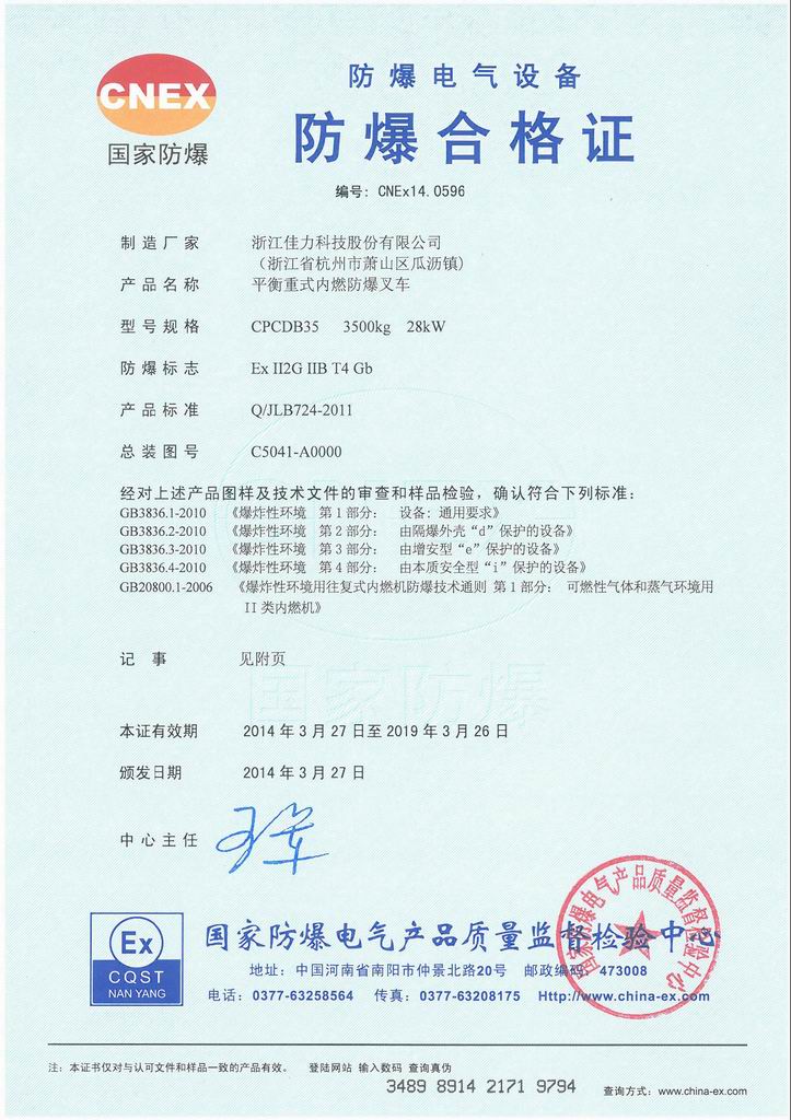 CPCDB35平衡重式內(nèi)燃防爆叉車 氣體證書
