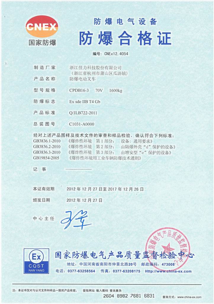 CPDB16-3 防爆電動(dòng)叉車三支點(diǎn)氣體證書